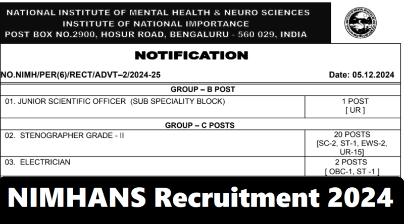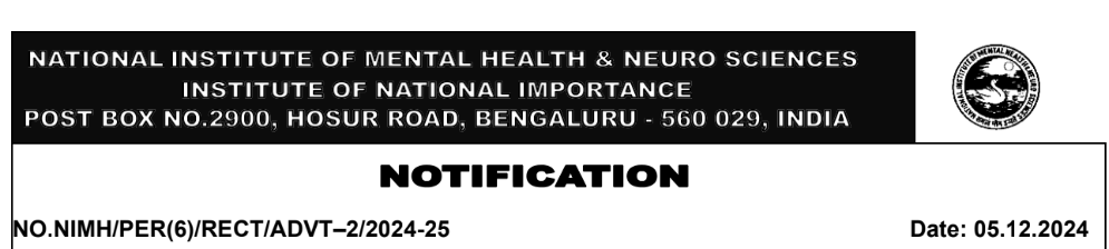 NIMHANS Recruitment 2024,ITI, Graduation Latest Vacancy 2024, 04/01/2025 Last Date