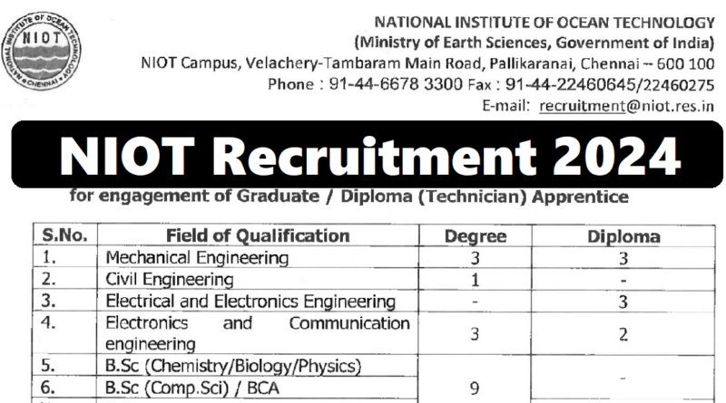 NIOT Apprentice Recruitment 2024, Graduate & Diploma Latest Vacancy 2024