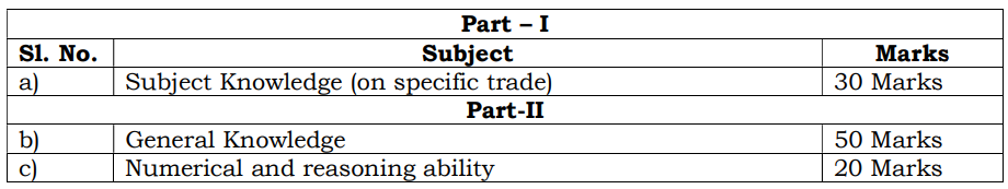 • The subject knowledge paper of Computer Based Test (CBT) will be on specific trade. However, the subject knowledge paper of Computer Based Test (CBT) for the post of Maintenance Assistant (Mech.) (Tr.) for Motor Mechanic and Diesel Mechanic Trades will be one for both the Trades.