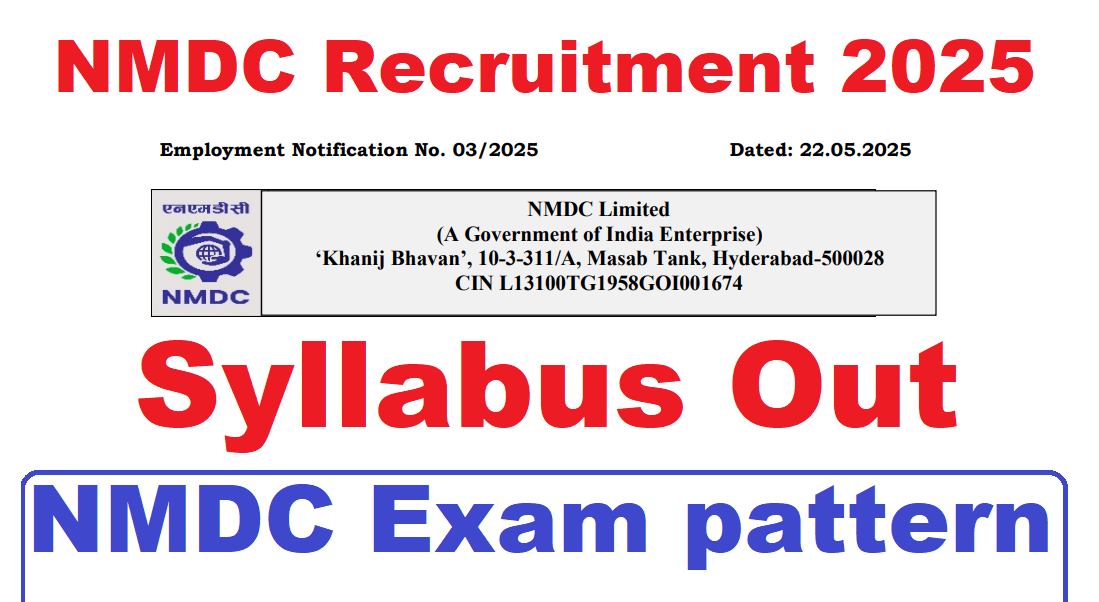 NMDC Recruitment 2025 Online form 25-05-2025 से भरे जायेंगे | NMDC Recruitment 2025 Online form 14.06.2025 तक भरे जायेंगे | NMDC Exam 2025 की तैयारी के लिए NMDC Syllabus 2025 निचे दी गई है | NMDC Recruitment Exam Pattern etc की जानकारी निचे दी गई है |