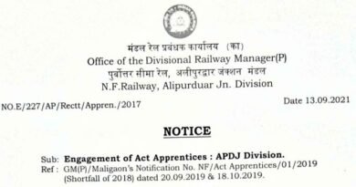 Northeast Frontier Railway RKVY Merit list all divisions 2021
