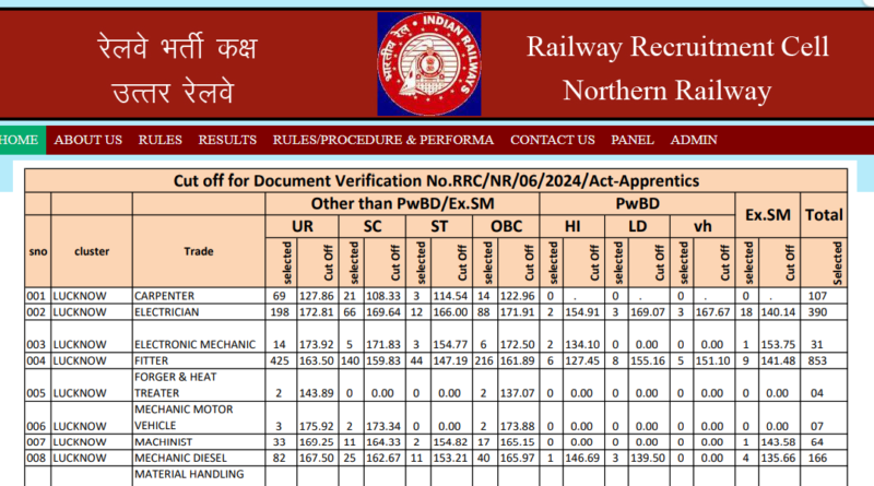 Northern Railway Apprentice 2024: ONLINE applications are invited from ELIGIBLE and desirous candidates for engagement of Act Apprentices under the Apprentices Act 1961 for imparting training at various Divisions/ Units/ Workshops over Northern Railway. Imparting Training in Railway will not confer any right to the candidates for their absorption in Railway after successful completion of training. ITI Pass Electrician, Fitter, Welder, Mechanic Diesel, Turner, Carpenter, Painter, COPA, Steno, Electronic Mechanic, MMTM etc trades can apply Northern Railway Apprentice 2024. RRC NR Apprentice application Closed on 16-09-2024. RRC NR Apprentice 2024 Result Issued on 05-10-2024. Railway Recruitment Cell Northern Railway Apprentice 2024 Cut off released.