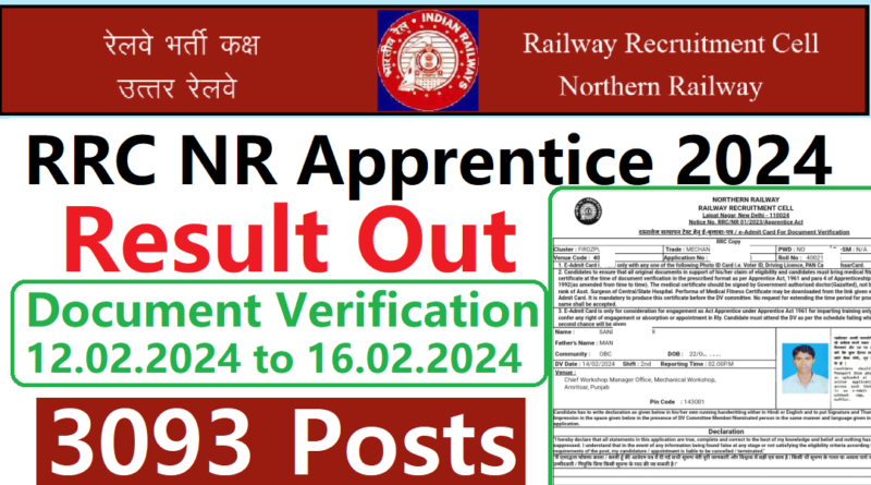 Northern Railway Apprentice Result Out 2024 : Northen Railway की ओर से ITI Pass Candidates के लिए 3093 Posts पर Apprentice निकली थी जिसका Online form 11-01-2024 तक भरा गया था | Northern Railway Apprentice का Result का सभी इंतजार कर रहे हैं | Northern Railway Apprentice Merit list कब जारी किया जायेगा ? Northern Railway Apprentice status link 19-01-2024 को जारी किया गया | Northern Railway Apprentice Result आज जारी हो गई | Northern Railway Apprentice Result Link जारी , 2024 का Cut off, और Admit Card Official आते ही Upload कर दी जाएगी |