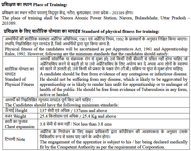 life Extension, Waste Management and Decommissioning of Nuclear Reactors in India under one roof, invites applications in the prescribed format for Trade Apprentice, Diploma Apprentice and Graduate Apprentice under The Apprentices Act, 1961 and The Apprentice Rules, 1992 in the Narora Atomic Power Station, Plant Site, Narora, Dist.- Bulandshahr (Uttar Pradesh), as per following :