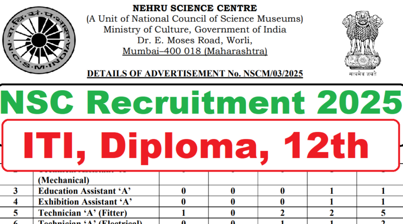 NSC Recruitment 2025 : Nehru Science Centre (NSC) की ओर से 19 Posts पर Recruitment निकली है जिसका Online form शुरू है | NSC Recruitment 2025 Offline form 20/03/2025 तक भरा जायेगा | 12th, ITI, Diploma & Graduate pass in various candidates NSC Recruitment 2025 offline form भर सकता है | Interested and eligible candidates NSC Recruitment form भर सकते हैं |NSC Recruitment Full Notification निचे दिया गया हैI NSC Recruitment Speed Post Venue निचे दिया गया है I