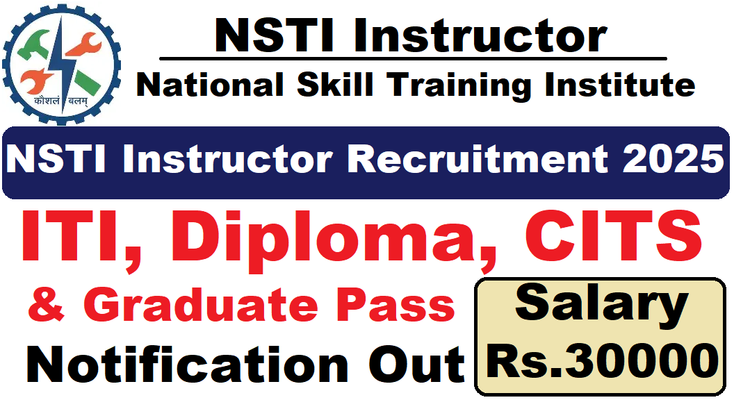 NSTI Instructor Recruitment 2025, 10th+ ITI, Diploma & Degree Pass Latest Vacancy 2025, 20/06/2025 Last Date