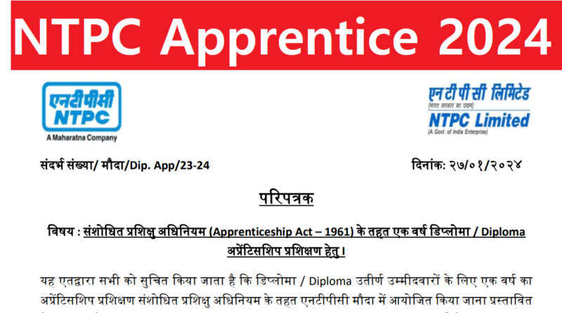 NTPC Mouda Apprentice Recruitment 2024: NTPC Mouda की ओर से Diploma Pass Candidates के लिए Apprentice की recruitment निकली है जिसका Online form भरने का link शुरू हो चूका है | NTPC Mouda Apprentice online form Diploma Pass Mechanical, Electricial और Electronics/Instrumentation Branch candidates eligible हैं |