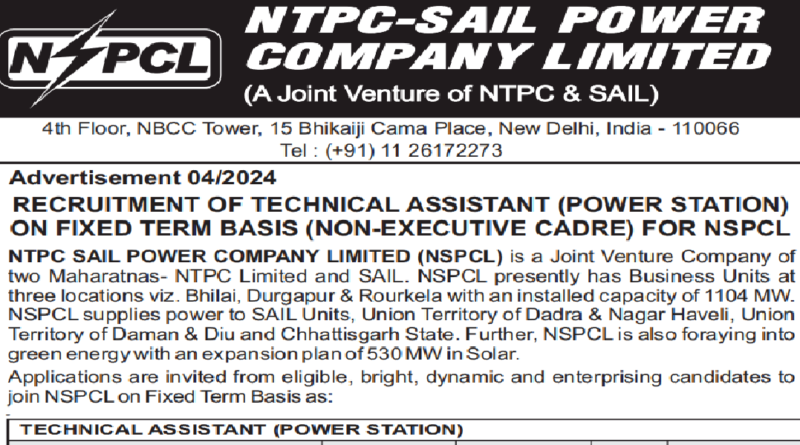 | Recruitment Organization | NTPC Sail Power Company Limited (NSPCL) |