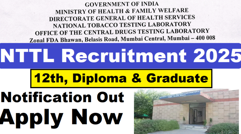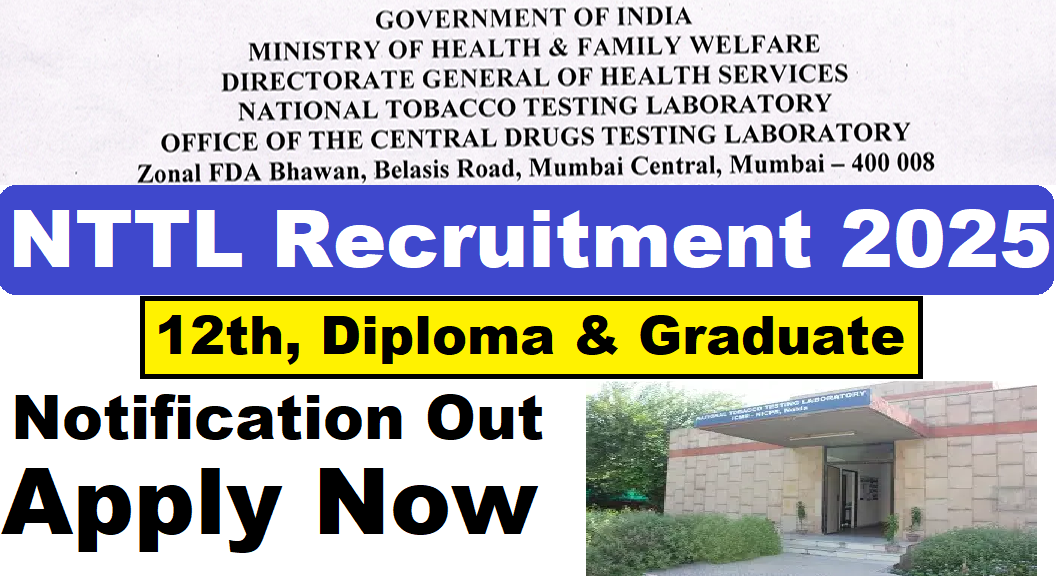 NTTL Recruitment 2025 : The Director, National Tobacco Testing Laboratory, Mumbai की ओर से 80 Posts पर Recruitment निकली है जिसका Offline form 01/10/2025 से शुरू है | NTTL Recruitment 2025 Offline form 31/10/2025 तक भरा जायेगा |12th, ITI & Graduate Pass in various candidates NTTL Recruitment 2025 offline form भर सकता है | Interested and eligible candidates NTTL Recruitment 2025 form भर सकते हैं | NTTL Recruitment Full Notification निचे दिया गया हैI NTTL Recruitment Speed Post Application Form Address निचे दिया गया है I