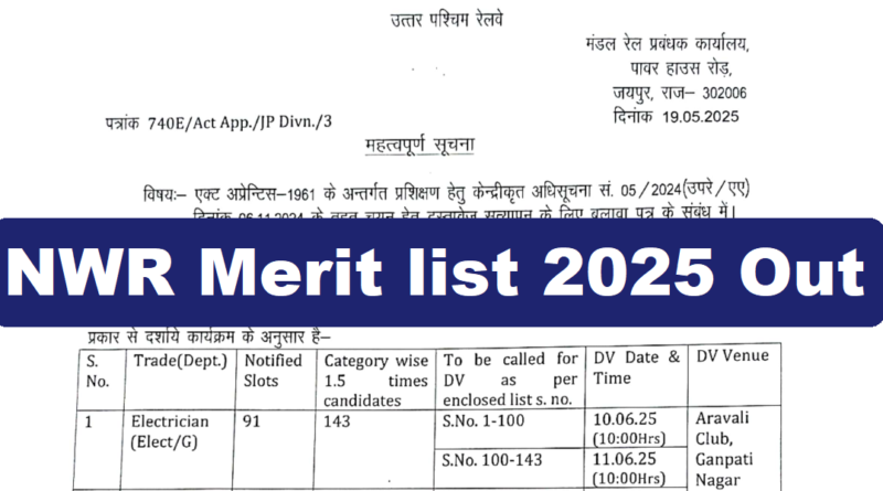 NWR Jaipur Apprentice Merit List 2025, NWR Apprentice Result 2025, RRC Jaipur Merit List 2025, Railway Apprentice Merit List 2025, Jaipur Apprentice Result 2025, North Western Railway Apprentice List 2025, NWR Jaipur ITI Apprentice Merit List, NWR Railway Result 2025, NWR Apprentice Cut Off 2025, NWR Jaipur Apprentice Selection List, NWR ITI Apprentice 2025 Result, RRC NWR Jaipur Result 2025, Railway ITI Apprentice Merit List, Railway Apprentice 2025 Result, Railway Apprentice 2025 Cut Off,Sarkari Result NWR Jaipur, Jaipur Railway Apprentice Selection List, NWR Apprentice Joining Date 2025, Railway Apprentice 2025 Merit PDF, NWR Jaipur Apprentice Shortlisted Candidates, NWR Railway Apprentice Cut Off Marks, Jaipur Railway Apprentice Notification 2025, NWR Jaipur Apprentice Final List, RRC Apprentice 2025 Jaipur, Railway