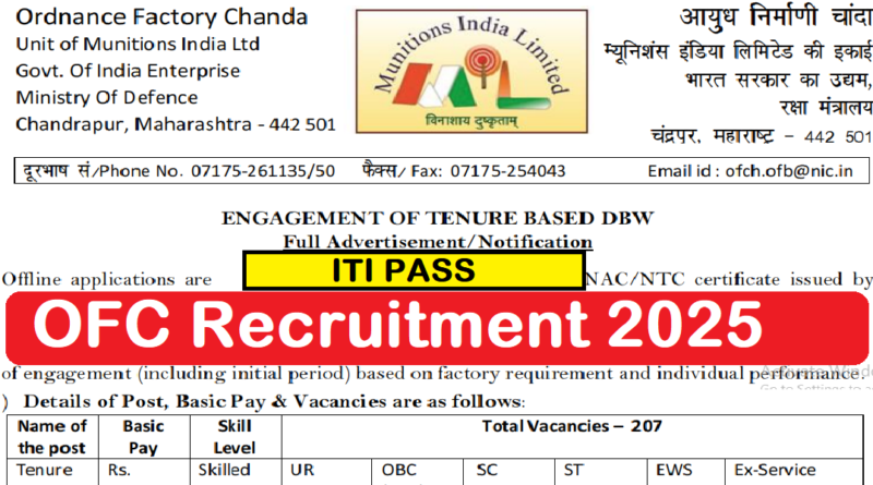 Ordnance Factory Chanda Recruitment 2025, ITI Pass Latest Vacancy 2025