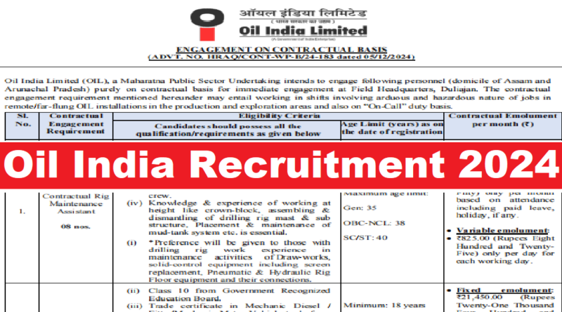 | Recruitment Organization | Oil India Recruitment 2024 |