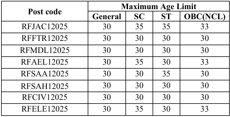 | RFCIV12025 | (i) Passed 03 (three) years Diploma in Civil Engineering from a Government Recognized University/Board/Institute. Must have passed Class 10 from a Government Recognized Board. |