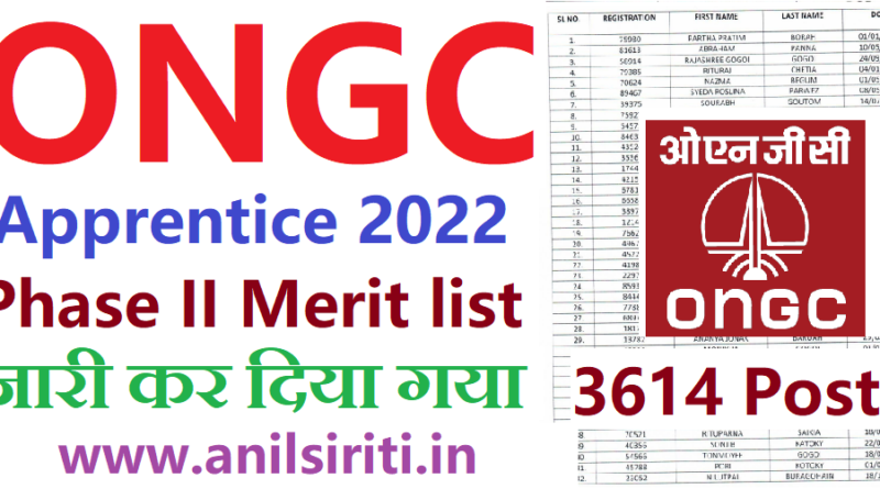 Oil and Natural Gas Corporation Limited (ONGC) Apprentice Phase II merit list pdf download 2022: ONGC की तरफ से ITI, Diploma, Bachelor,s Degree के लिए 3614 Posts पर Apprentice निकली थी जिसका ONGC के सभी Region का Phase I Merit list जारी हुआ था साथ ही सभी region का Document verification भी हो चूका है | अब ONGC द्वारा Region Wise Phase II का Document Verification के लिए Mail आना शुरू हो चूका है | साथ ही ONGC Phase II Official Merit list भी जारी होने लगा है | ONGC Phase II का Merit list अलग अलग date में जारी होगा और इसी Page update होगा इसके लिए Regular Refresh करके चेक करते रहिये | निचे दिए गये merit list में अपना नाम चेक करें |