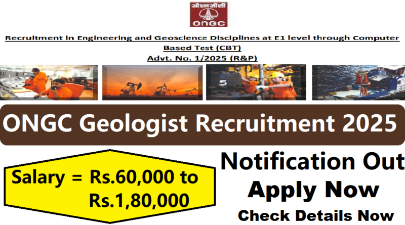 ONGC Geologist Recruitment 2025, Oil & Natural Gas Latest Vacancy 2025, 24/01/2025 Last Date