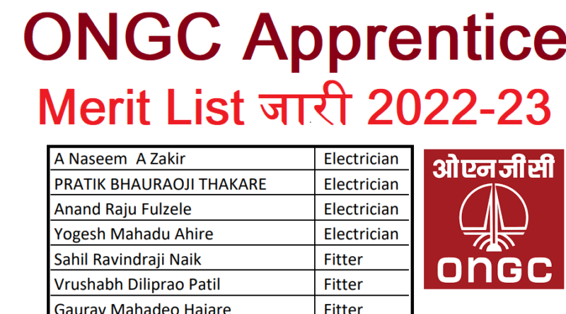 ONGC Uran Apprentice Merit list 2022-23, ITI, Graduation Pass Apprentice 2023