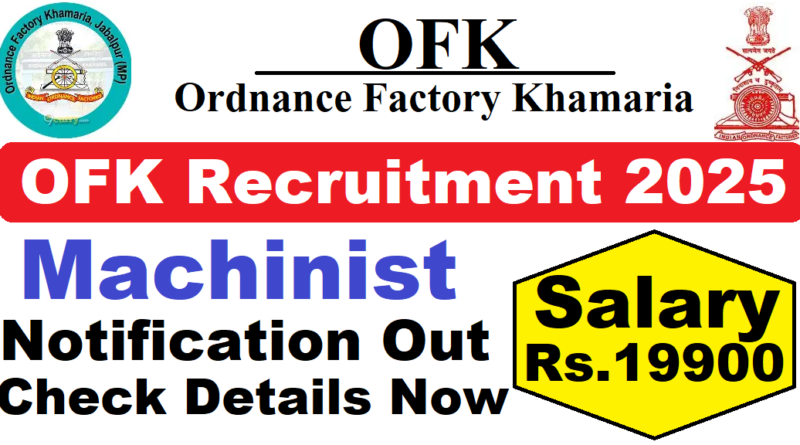 Ordnance Factory Khamaria Recruitment 2025 : Ordnance Factory Khamaria (OFK) की ओर से 50 Posts पर Recruitment निकली है जिसका Online form 07/06/2025 से शुरू है | Ordnance Factory Khamaria Recruitment 2025Online form 27/06/2025 तक भरा जायेगा |Ex-Apprentices of Machinist Pass in various candidates Ordnance Factory Khamaria Recruitment 2025 online form भर सकता है | Interested and eligible candidates Ordnance Factory Khamaria Recruitment 2025 form भर सकते हैं | Ordnance Factory Khamaria Recruitment Short Notification निचे दिया गया हैI Ordnance Factory Khamaria Recruitment Apply Link निचे दिया गया है I