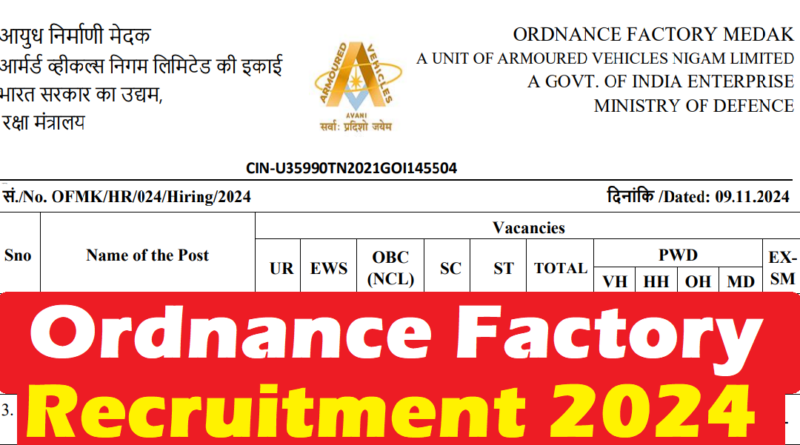 Ordnance Factory Recruitment 2024 Vacancy 2024
