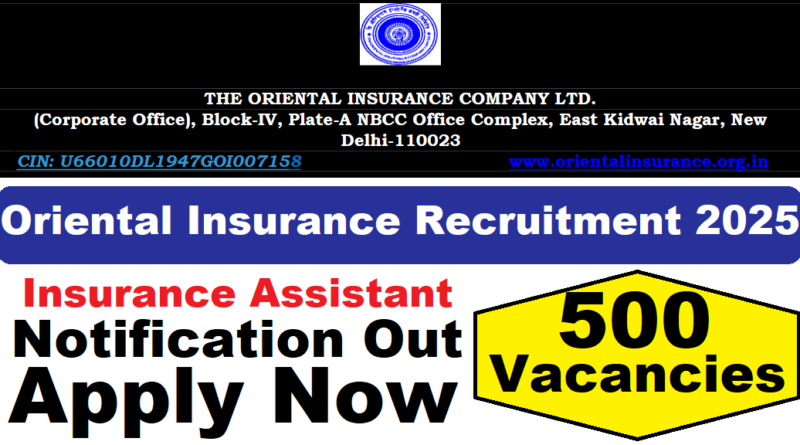 Oriental Insurance Recruitment 2025, Assistant Posts Latest Vacancy 2025, 17/08/2025 Last Date