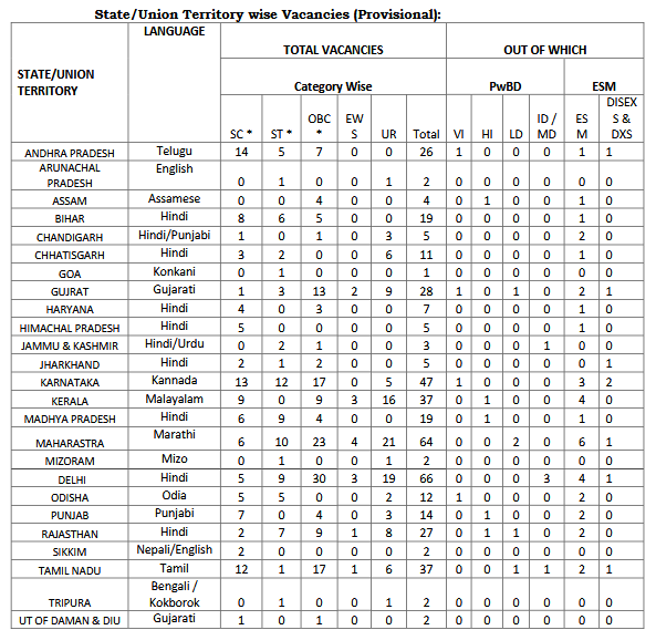 Knowledge of Reading, Writing and Speaking of Regional Language of the State/UT against the vacancies for which a candidate wishes to apply, is essential. To ascertain the candidate’s familiarity with the Regional Language of the State/UT, a language test will conducted before final selection. Candidates not found to be proficient in the Regional Language Test would be disqualified.