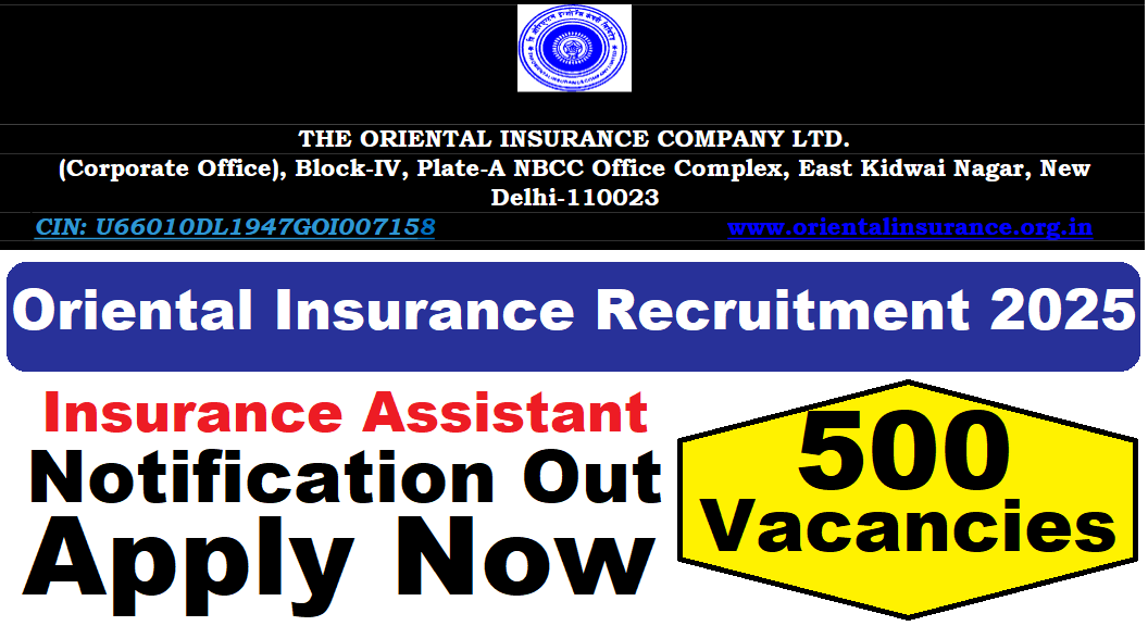 Oriental Insurance Recruitment 2025 : Oriental Insurance Company Limited (OICL) की ओर से 500 Posts पर Recruitment निकली है जिसका Online form 02/08/2025 से शुरू है |Oriental Insurance Recruitment 2025 Online form 17/08/2025 तक भरा जायेगा | Graduate Pass in various candidates Oriental Insurance Recruitment 2025 online form भर सकता है | Interested and eligible candidates Oriental Insurance Recruitment 2025 form भर सकते हैं |Oriental Insurance Recruitment Full Notification निचे दिया गया हैI Oriental Insurance Recruitment Apply Link निचे दिया गया है I