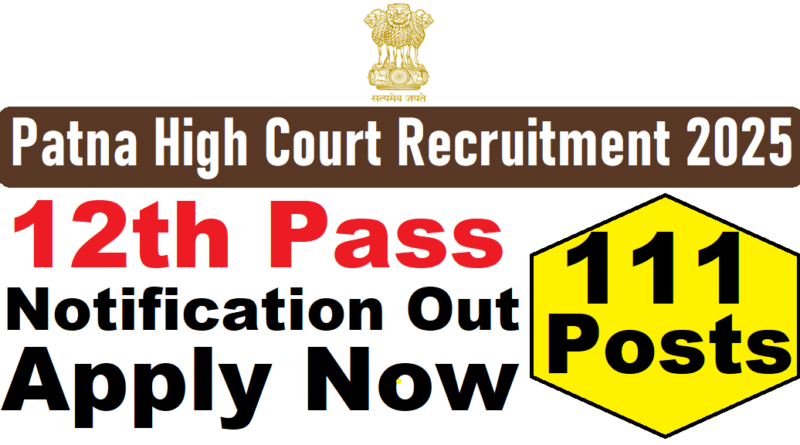 Patna High Court Recruitment 2025, 111 Vacancies, 12th Pass Latest Vacancy 2025, 19/09/2025 Last Date