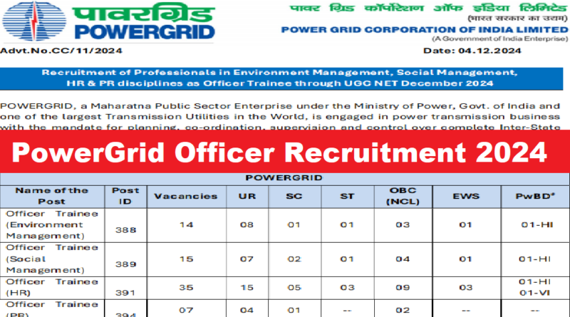PGCIL Recruitment 2024, Powergrid Latest Vacancy 2024, 24-12-2024 last Date