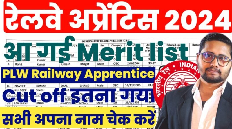 PLW Railway Apprentice Final Merit list 2024 Out, PLW Apprentice final Cut off 2024