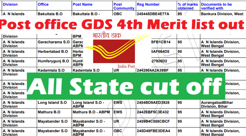 | Category | Post Office GDS 4th merit list out |