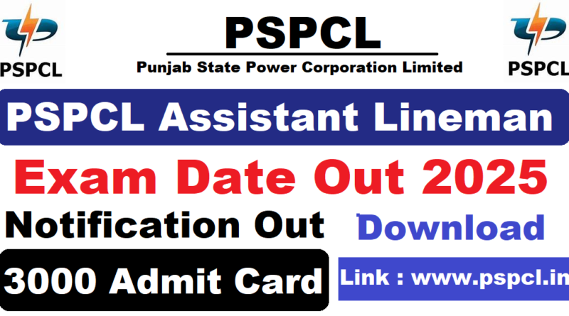 PSPCL Assistant Lineman Exam Date Out 2025 : The Punjab State Power Corporation Limited (PSPCL) की ओर से 3000 ALM Posts पर Recruitment निकली थी , Interested and eligible candidates PSPCL Assistant Lineman Recruitment 2025 का form भरे थे , वे सभी candidates Exam Date का इंतज़ार कर रहे है| PSPCL Assistant Lineman का Exam Date जारी कर दिया गया है एवं Admit Card भी जारी कर दिया जाएगा , जिसक link नीचे दिया गया है , जिसे आप आसानी से download कर सकते है I PSPCL Assistant Lineman का Exam 24 June 2025 को Computer Based Test के रूप मे लिया जाएगा I
