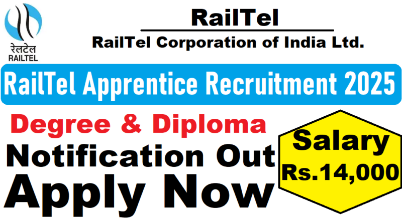 RailTel Apprentice Recruitment 2025, Diploma & Graduate Pass Latest Vacancy 2025, 16/08/2025 Last date