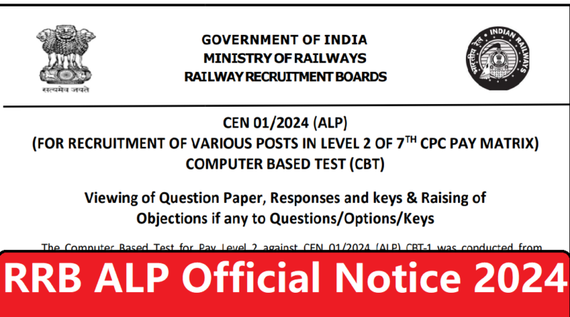 Railway ALP Answer key Official Notice 2024 Out, RRB ALP CEN 01/2024
