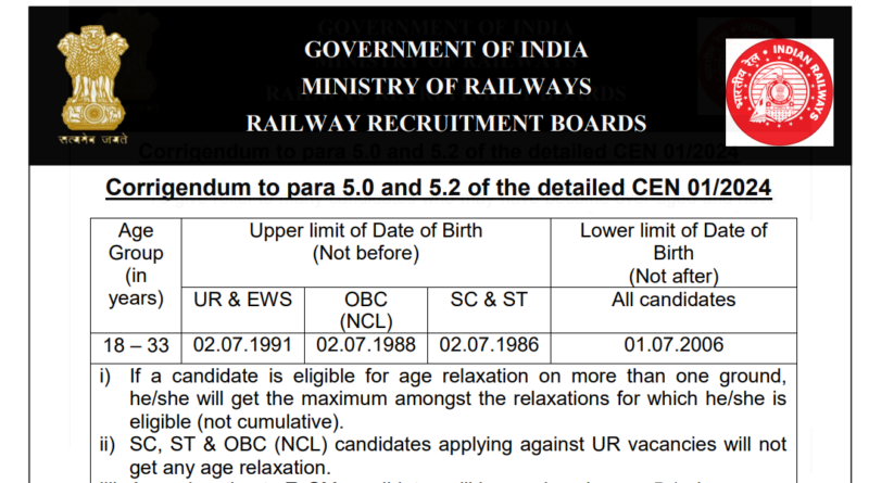 Railway ALP Recruitment Age Increase 2024 Official Notice Out, RRB CEN 01/2024