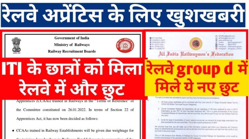 Ministry of Railways in terms of Order No. ERB – I/2022/23/06 date 09.02.2022 has decided to include issues of Course Completed constituted on 26.01.2022. In terms of Section 22 of Apprentice Act, it has now been decided as follows :