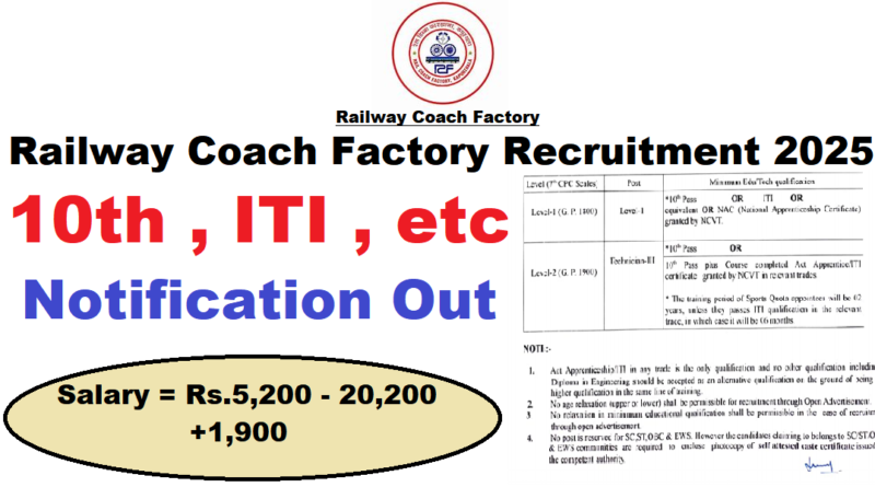 Railway Coach Factory Recruitment Salary 2025