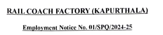 Railway Coach Factory Recruitment 2025 : Rail Coach Factory (Kapurthala) की ओर से 23 Posts पर Recruitment निकली है जिसका Online form 04/01/2025 से शुरू है | Railway Coach Factory Recruitment 2025 Online form 03/02/2025 तक भरा जायेगा | 10th or ITI Pass in various trade candidates Railway Coach Factory Recruitment online form भर सकता है | Interested and eligible candidates Railway Coach Factory Recruitment form भर सकते हैं |Railway Coach Factory Recruitment Full Notification निचे दिया गया हैI Railway Coach Factory Recruitment 2025 Apply Link निचे दिया गया है I