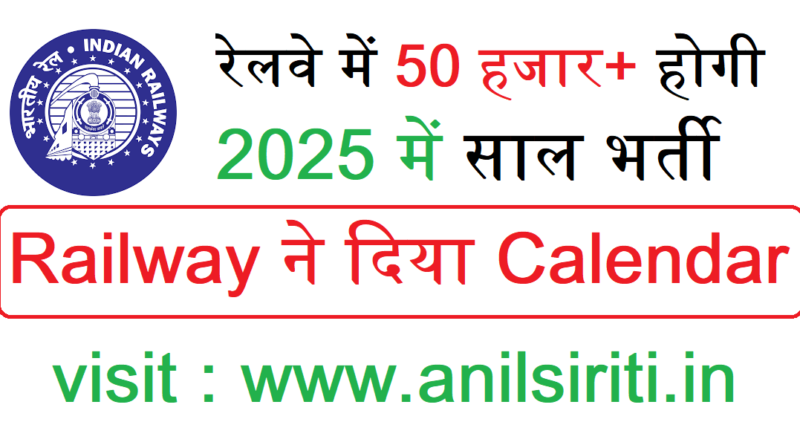 Railway में 50 हजार पदों पर होगी अगले साल बहाली: Railway Recruitment की तैयारी कर रहे छात्रो के लिए के खुशखबरी आ चुकी है | Railway ने अगले साल 2025 में होने वाली भर्तियो का कैलेंडर जारी कर दिया गया है | RRB 2025 में ALP, Technician, RPF, JE, RRB NTPC, Level 1 (Group D) etc Posts पर लगभग 50 हजार Posts पर भर्ती आनी है |