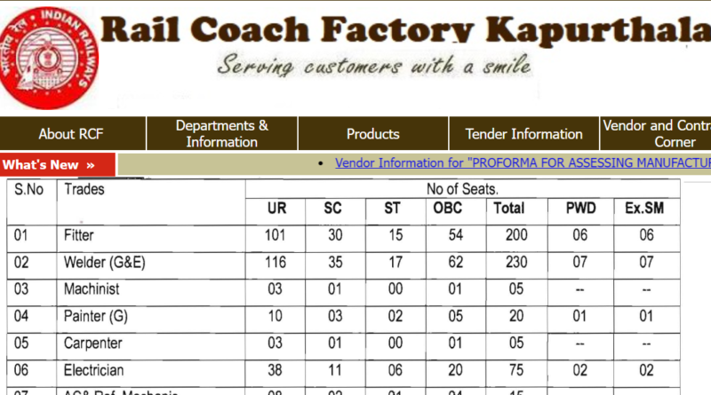 RCF (Rail Coach Factory Kapurthala) Apprenticeship 2024: RCF Kapurthala की तरफ से ITI Pass Candidates के लिए 550 seats पर Apprenticeship निकली थी | Rail Coach Factory Kapurthala जोकि Punjab में है | Railway Coach Factory Kapurthala Apprenticeship 2024 में अगर आपका selection होता है तो आप Railway में Group D की vacancy में 20% का quota मिलता है | RCF Kapurthala Punjab Apprentice 2024 में ITI Pass Fitter, Welder (G & E), Machinist, Painter (G), Carpenter, Mechanic Motor Vehicle, Electrician, Electronic Mechanic, MRAC Trade के candidates Online form apply किये थे | RCF Railway Apprentice Document Verification Merit list 4 July 2024 को जारी किया गया था| RCF Apprentice 2024 Joining merit list PDF जारी कर दिया गया है |