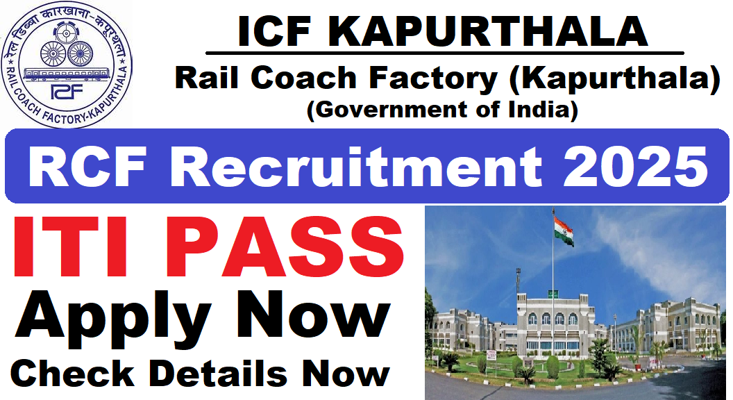 RCF Recruitment 2025 : Rail Coach Factory Kapurthala की ओर से Fitter, Welder (G&E), Machinist, Painter (G), Carpenter, Electrician, AC& Ref. Mechanic Posts पर Recruitment निकली है जिसका Online form July 2025 से शुरू हो सकता है| RCF Recruitment 2025 Online form August 2025 तक भरा जायेगा |ITI Pass in various candidates RCF Recruitment 2025 online form भर सकता है | Interested and eligible candidates RCF Recruitment 2025 form भर सकते हैं |RCF Recruitment Full Notification निचे दिया गया हैI RCF Recruitment Apply Link निचे दिया गया है I