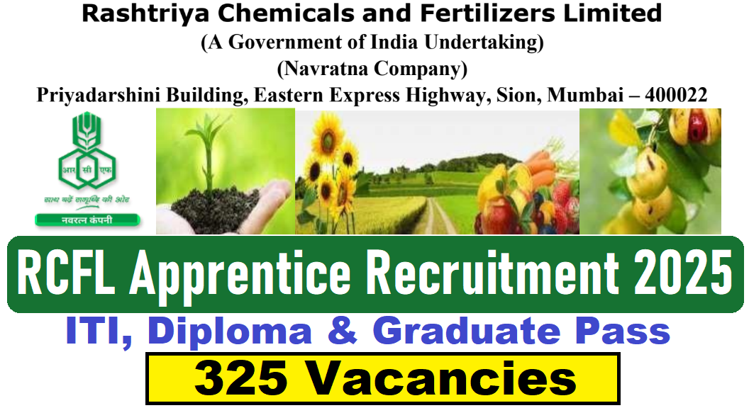 RCFL Apprentice Recruitment 2025 : Rashtriya Chemicals and Fertilizers Limited (RCF Ltd) की ओर से 325 Posts पर Recruitment निकली है जिसका Online form 29/08/2025 से शुरू है |RCFL Apprentice Recruitment 2025Online form 12/09/2025 तक भरा जायेगा | ITI/Diploma & Graduate Pass in various candidates RCFL Apprentice Recruitment 2025 online form भर सकता है | Interested and eligible candidates RCFL Apprentice Recruitment 2025 form भर सकते हैं | RCFL Apprentice Recruitment Full Notification निचे दिया गया हैI RCFL Apprentice Recruitment Apply Link निचे दिया गया है I