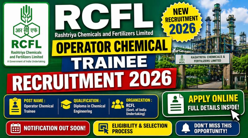 🟢 APPLY NOW | RCF Chemical Operator Trainee 2026 — 188 Posts | B.Sc Chemistry + AO(CP) ITI / Diploma Chemical | Last Date: 27 April 2026