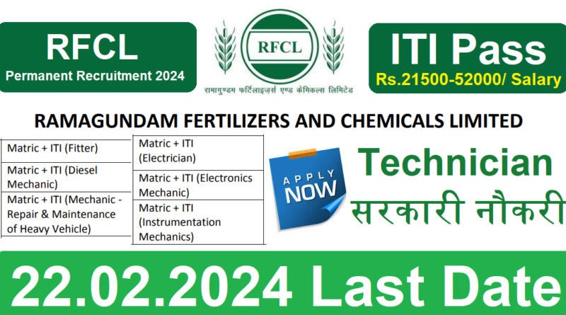 RCFL Permanent Recruitment 2024: Ramagundam Fertilizers & Chemicals Limited (RFCL) is a Joint Venture Company formed by National Fertilizers Limited (NFL), Engineers India Limited (EIL) and Fertilizer Corporation of India Limited (FCIL) to take forward the revival of Ramagundam Unit of FCIL by setting up of gas based AmmoniaNeem Coated Urea complex at Ramagundam site of FCIL, District-Peddapalli, Telangana-505210. RFCL Recruitment Online form Apply from 24.01.2024. RCFL Recruiment Online form apply before 22.02.2024. ITI Pass Fitter, Diesel Mechanic, Mechanic -Repair & Maintenance of Heavy Vehicle, Electrician, Electronic Mechanic, Instrumentation Mechanic Trades are eligible to apply RFCL Recruitment 2024.