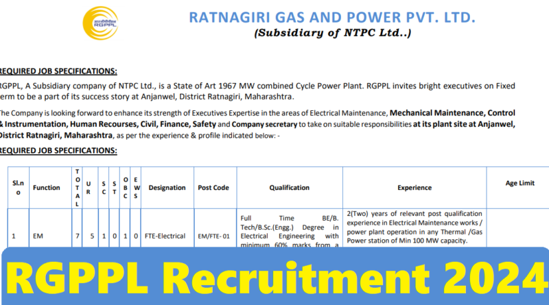 | Recruitment Organization | The Ratnagiri Gas and Power Pvt Limited(RGPPL) |