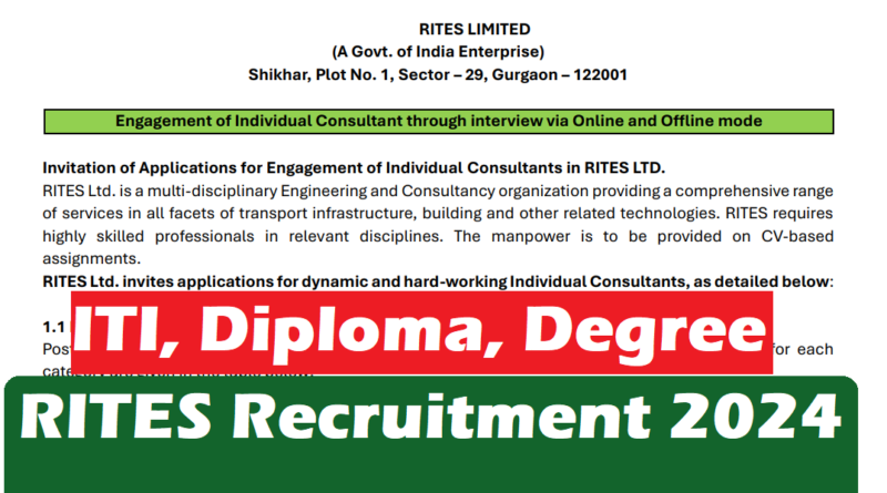 RITES Recruitment 2024, ITI, Diploma, Graduate Latest vacancy 2024, 27/11/2024 last date
