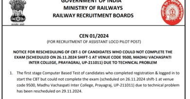 RPF SI CBT 1 Exam Reschedule 2024: RPF SI की post पर 452 Seats पर Recruitment निकली थी जिसका Online form 15-04-2024 से भरने शुरू हुए थे | RPF SI Recruitment Online form 14-05-2024 तक भरे गये थे | RPF SI Recruitment 2024 Exam 02.12.2024, 03.12.2024, 09.12.2024 & 12.12.2024 तक हो रहा है | RPF CBT 1 Exam 09-12-2024 के शिफ्ट 1 Exam एक Center को Cancel किया गया है | Tech Testing Solution Zone Lucknow के 09-12-2024 Shift 1 LAB – 3 के 41 Candidates के Exam को Rescheduled किया गया है |