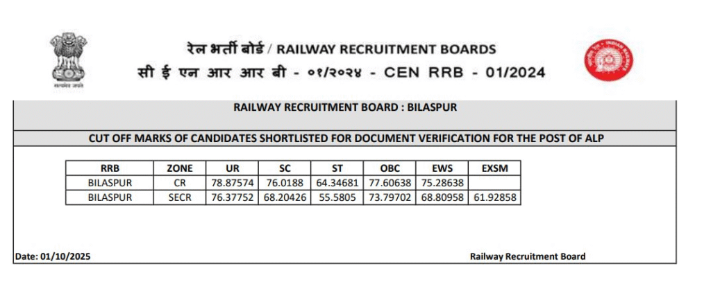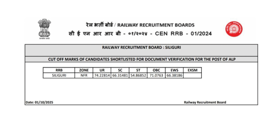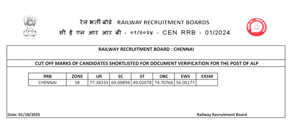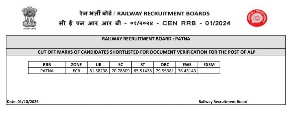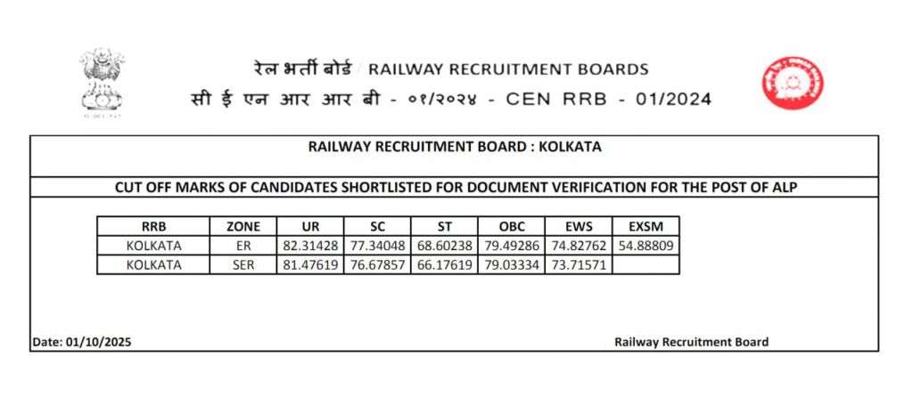 RRB ALP CBAT Result 2025 Out, Railway ALP 01/2024 Final Result Out and Zone wise cut off 2025
