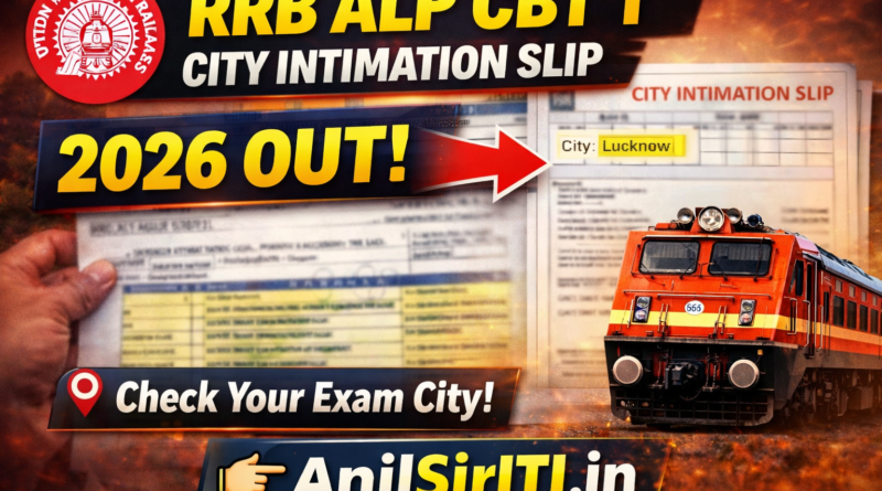 RRB ALP CBT 1 City Intimation Slip 2026 Out: Railway Recrutiment Board की ओर से ITI Pass candidates के लिए Assistant Loco Pilot Posts की Recruitment निकली थी जिसका Online form 19 May 2025 तक form भरे गये थे जिसका Application status 5 dec 2025 तक जारी किया गया था | RRB ALP CBT 1 Exam Feb 2026 से शुरू होने वाला है | RRB ALP CBT 1 City Intimation Slip 03-02-2026 को जारी कर दिया जायेगा | RRB ALP CBT 1 City Slip Official link निचे दी गयी है | RRB ALP CBT 1 City Intimation Slip Official link बहुत जल्द जारी किया जायेगा | RRB ALP CBT 1 City Intimation Slip 2026 की latest update Anil Sir ITI telegram पर देखने को मिलेगा |