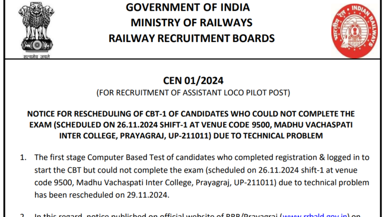 | Category | RRB ALP CBT 1 Exam Reschedule 2024 |