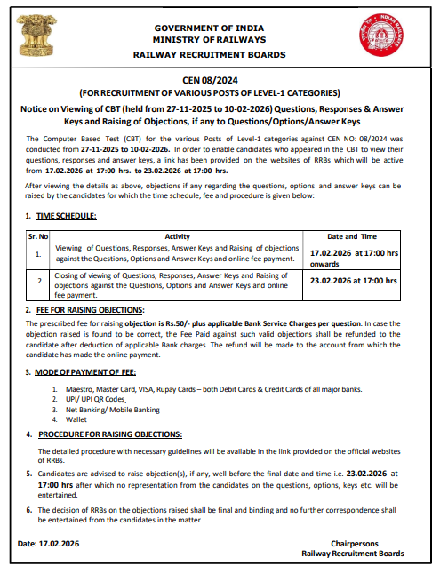 RRB Group D Answer Key 2026 – Download PDF, Raise Objection