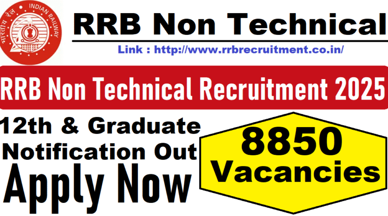 RRB Non Technical Recruitment 2025 : Railway Recruitment Board (RRB) की ओर से 8850 Posts पर Recruitment निकली है जिसका Online Under Graduate का form 21/10/2025 से एवं Graduate Level का Online Form 20/11/2025 से शुरू है | RRB Non Technical Recruitment 2025 Under Graduate का Online form 28/10 /2025 तक एवं Graduate Level का Online Form 27/11/2025 तक भरा जायेगा | 12th & Graduate Pass in various candidates RRB Non Technical Recruitment 2025 online form भर सकता है | Interested and eligible candidates RRB Non Technical Recruitment 2025 form भर सकते हैं | RRB Non Technical Recruitment Short Notification निचे दिया गया हैI RRB Non Technical Recruitment Apply Link निचे दिया गया है I